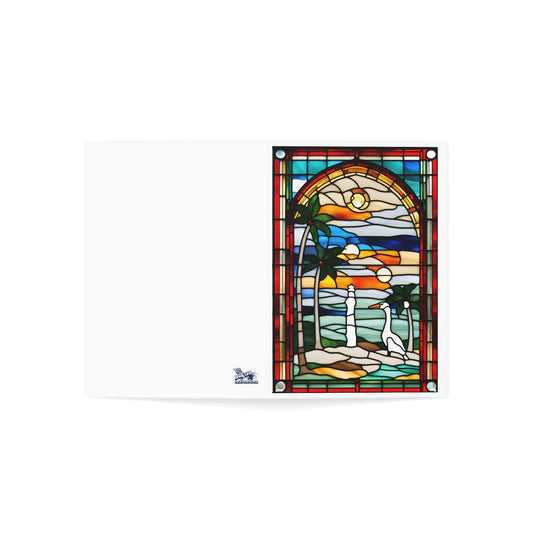 Christmas Thanksgiving Holidays Tranquil Beach Scene with Goose Greeting Cards Tiffany Studio Style w/ envelopes by The Art Shop